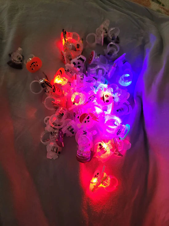 2. Are the Halloween LED Glow Rings (50pcs set) safe for kids to wear?