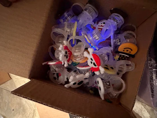 Each box includes 50 rings with 9โ12 assorted spooky designs, such as pumpkins, ghosts, skulls, bats, spiders, eyeballs, and more. The styles are randomly mixed, which keeps it fun and exciting for kids!