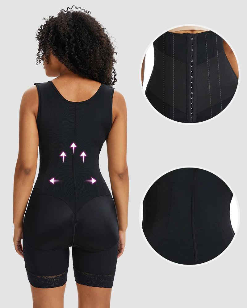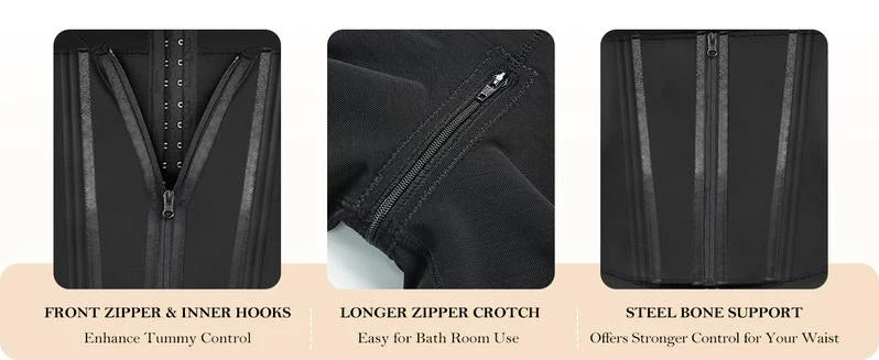 - Double Tummy Control: Inner adjustable hooks for a custom fit and outer zipper for firm support.