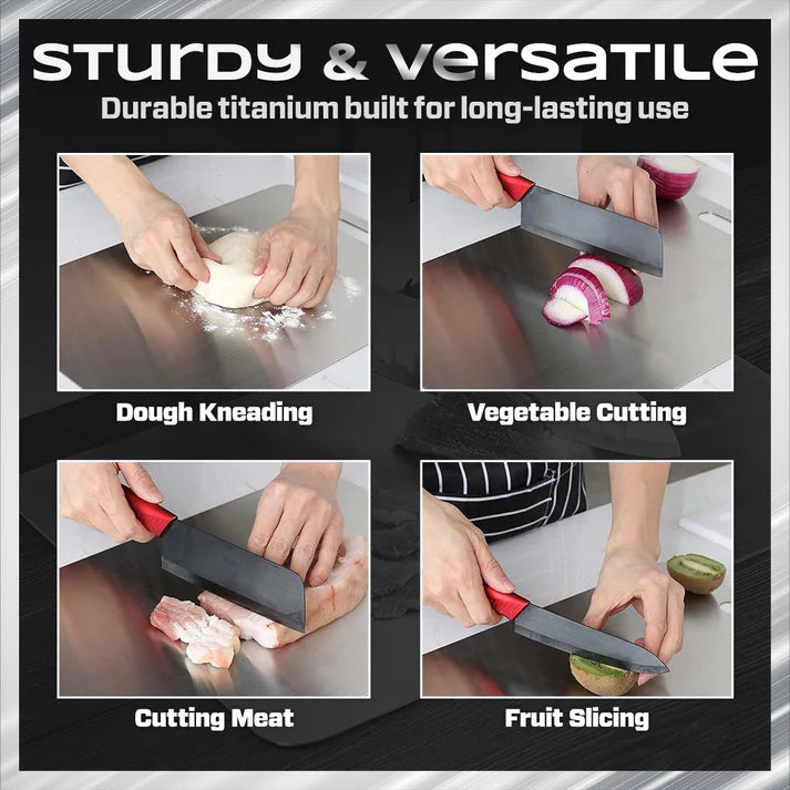 Engineered from high-quality titanium, this cutting board is built to withstand years of use without wearing down.