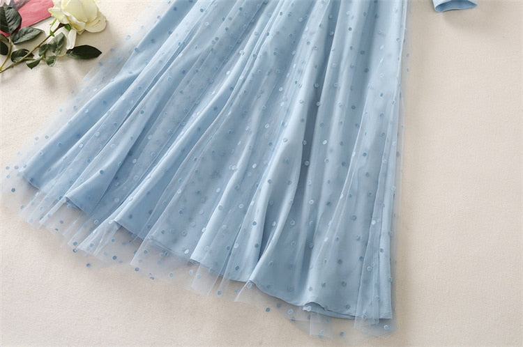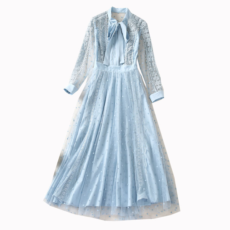 This luxurious dress is crafted from high quality materials to ensure an elegant, vintage, and chic look. Featuring an intricate embroidery design in a beautiful blue hue, the long sleeve and princess design creates an effortless, timeless silhouette.